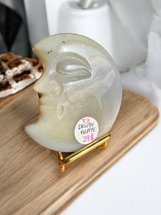 Druzy Agate Crystal Moons with Face: The Stone of Serenity and Inner Peace