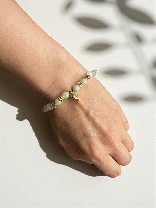 Aquamarine and Selenite Seahorse Crystal Bracelet