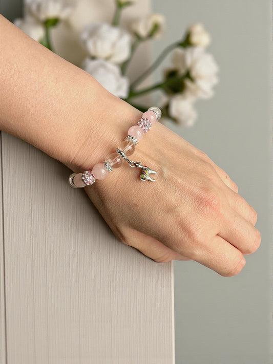 Rose Quartz and Clear Quartz Llama Crystal Bracelet