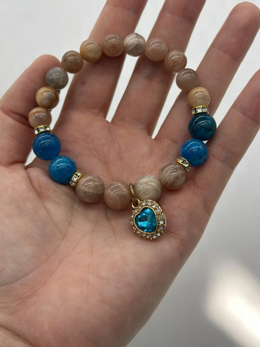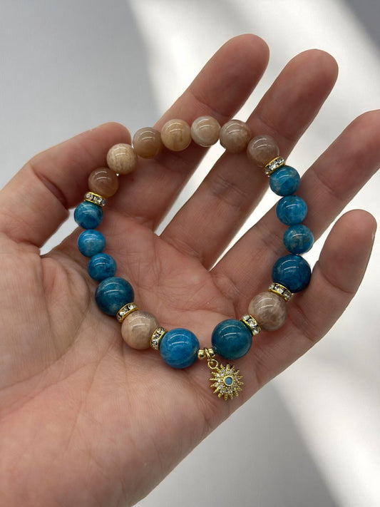 Sun stone and Blue Apatite Golden Sun Crystal Bracelet
