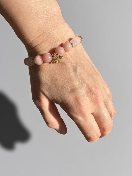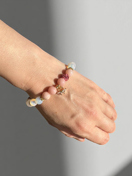 Pink Opal and Rose Quartz Rhinestone Butterfly Crystal Bracelet