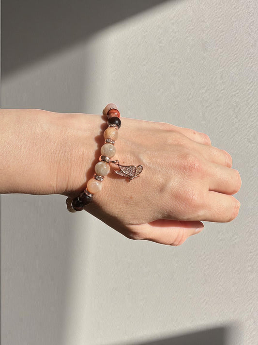 Sunstone and Red Tiger’s Eye Butterfly Crystal Bracelet