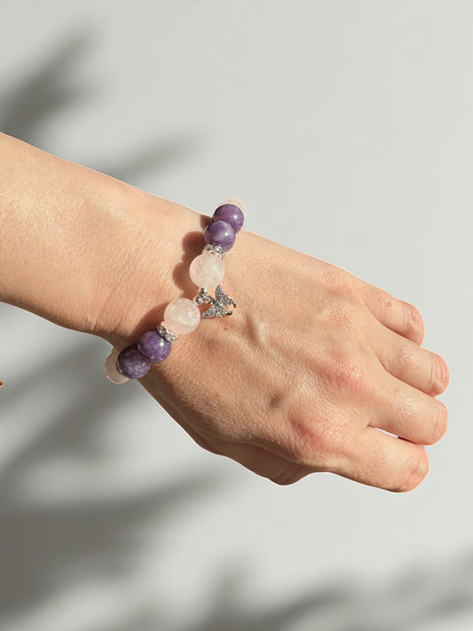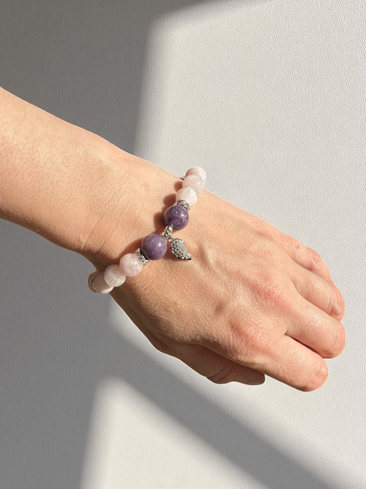 Rose Quartz, Kunzite, and Lepidolite Wing Crystal Bracelet