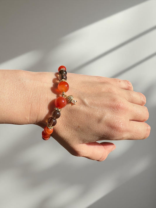 Carnelian and Smoky Quartz Mushroom Crystal Bracelet
