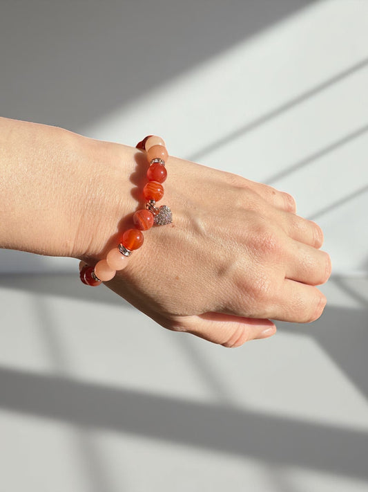 Carnelian and Pink Aventurine Rhinestone Heart Crystal Bracelet