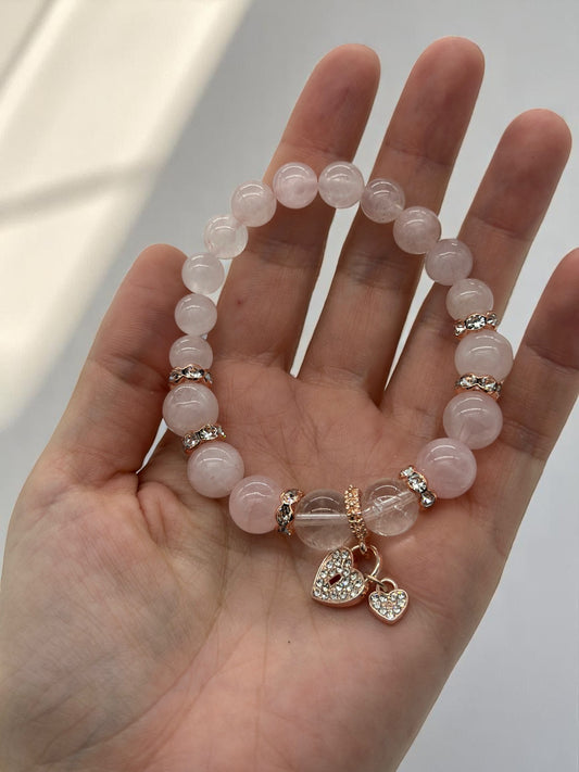 Rose Quartz and Clear Quartz Love Hearts Crystal Bracelet