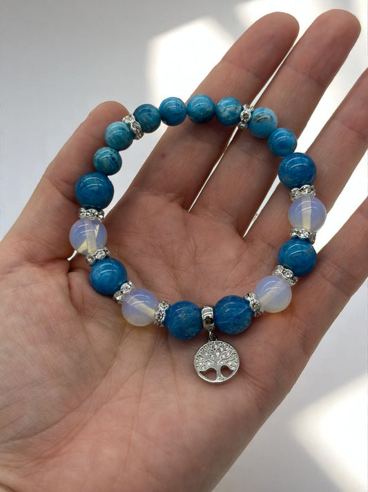Blue Apatite and Opalite Tree of Life Crystal Bracelet