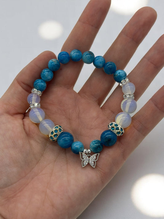 Blue Apatite and Opalite Butterfly Crystal Bracelet