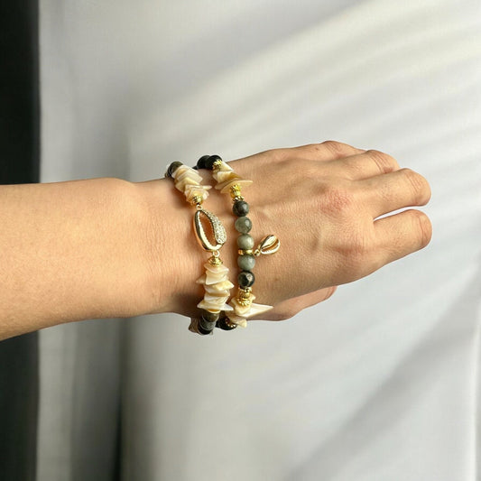 Larimar, Larvikite & Howlite Heart 18K Gold Crystal Bracelet