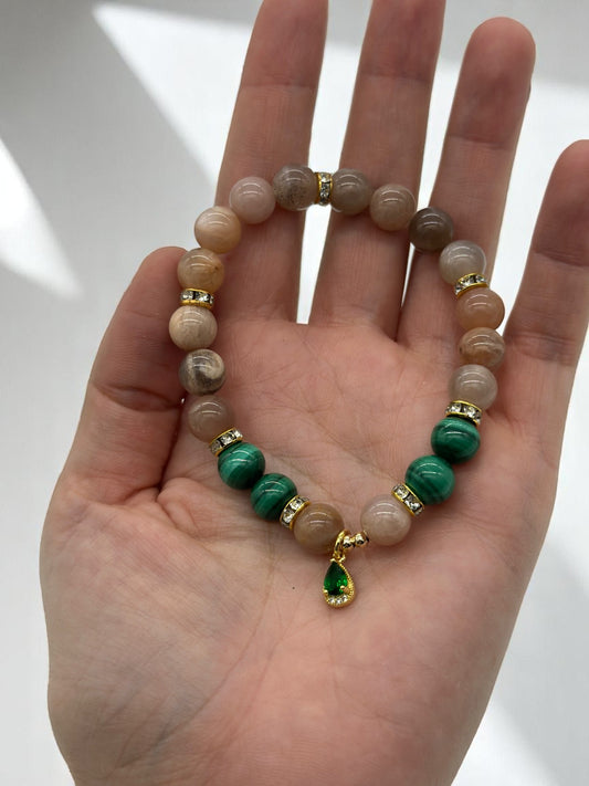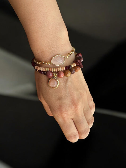 Sunstone and Mookaite 18K Gold Plated Crystal Bracelet