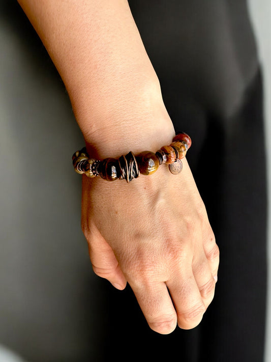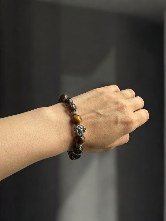 Tiger's Eye and Smoky Quartz Lion Crystal Bracelet