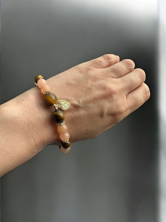 Tiger's Eye and Pink Aventurine Life Tree Crystal Bracelet