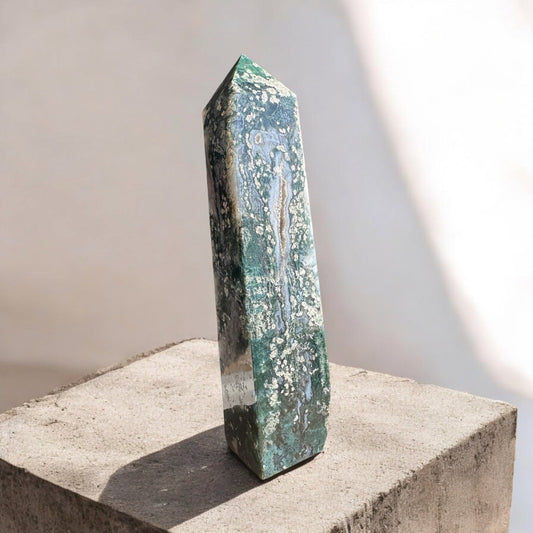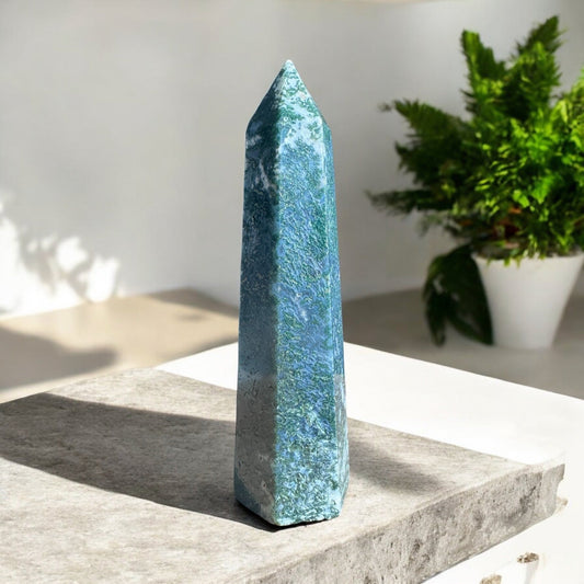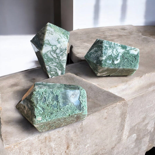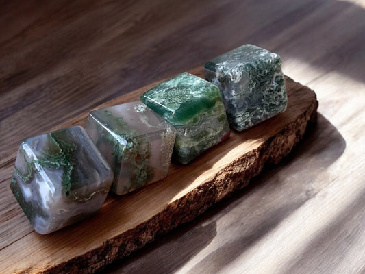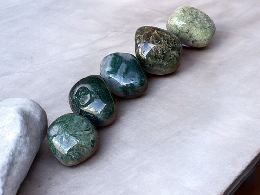 Moss Agate is a powerful green crystal known for its grounding and prosperity-enhancing properties. This crystal is said to attract abundance and boost emotional balance, making it perfect for those seeking harmony in their life. Our Moss Agate collection features a variety of forms, including crystal figurines, crystal shapes, crystal mushrooms, and crystal bowls. Whether you're looking for tumbled crystals, crystal spheres, or beautiful crystal jewellery, Moss Agate brings the energy of nature to your collection. Ideal for crystal decor and spiritual use, Moss Agate is a must-have for crystal lovers.