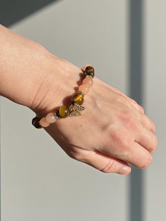 Pink Aventurine and Tiger’s Eye Rhinestone Butterfly Crystal Bracelet