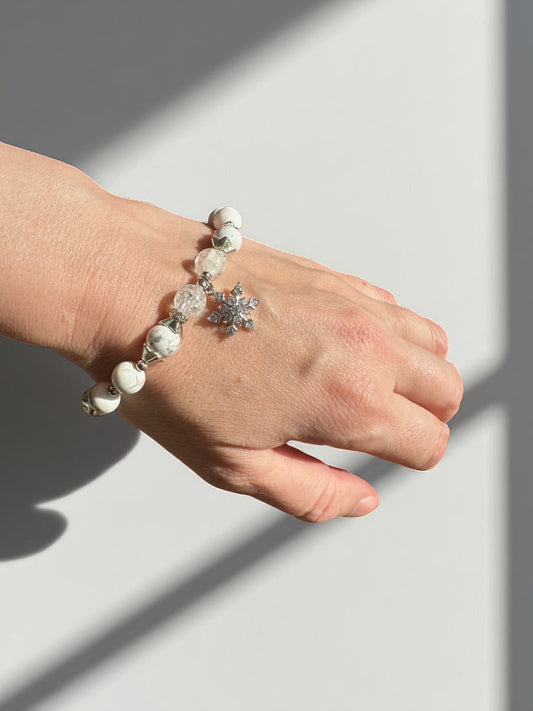 Clear Quartz and Howlite Rhinestone Snowflake Crystal Bracelet