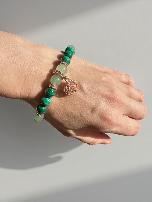 Green Aventurine, Malachite and Rhyolite Heart Tree Crystal Bracelet