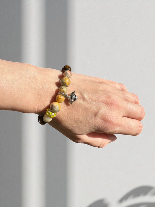 Crazy Lace Agate and Tiger’s Eye Bee Crystal Bracelet