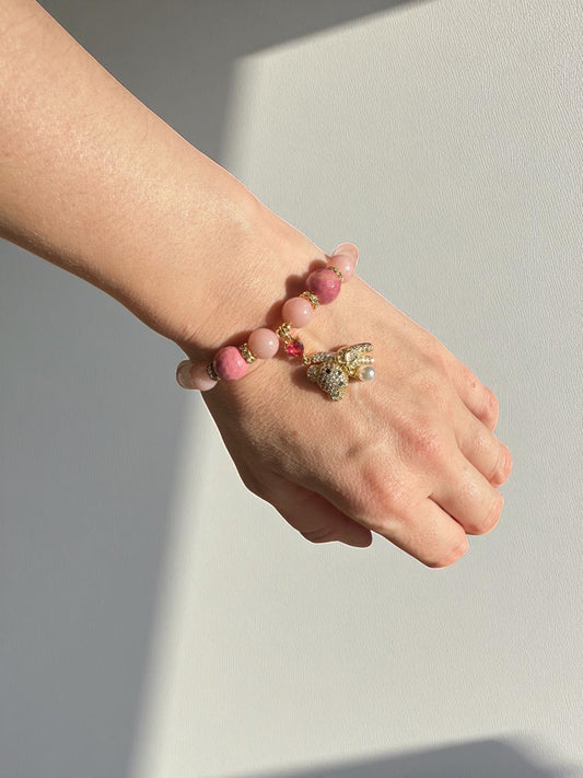 Rhodonite, Pink Opal and Rose Quartz Sparkling Teddy Bear Crystal Bracelet