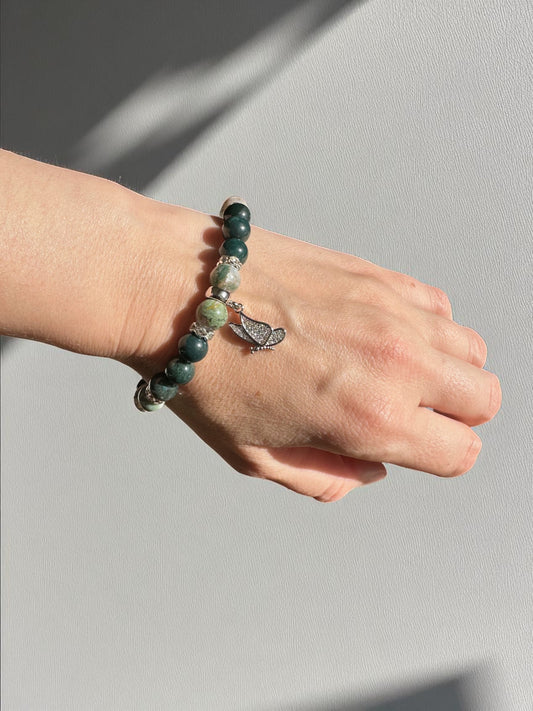 Moss Agate Rhinestone Butterfly Crystal Bracelet