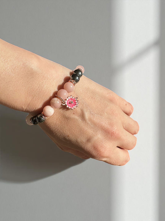 Pink Opal, Rose Quartz and Hematite Flower Crystal Bracelet