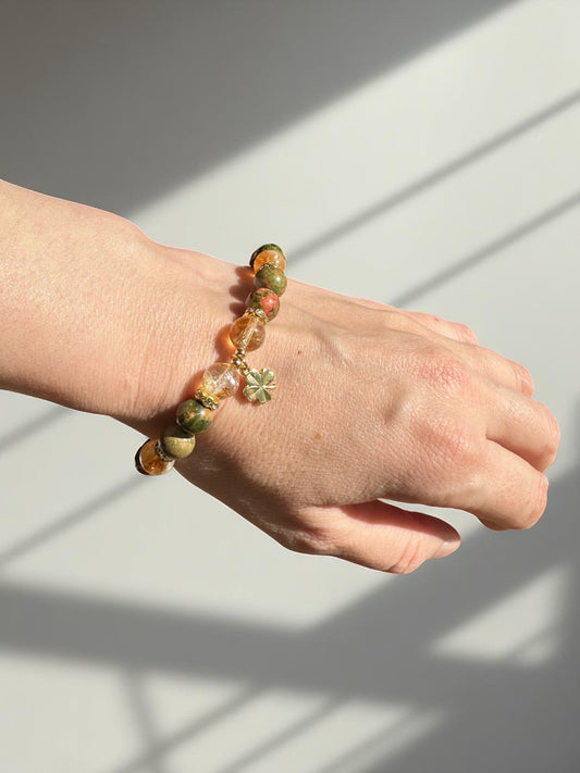 Citrine and Unakite Lucky Clover Crystal Bracelet