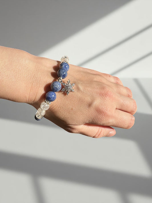 Sodalite and Clear Quartz Snowflake Crystal Bracelet