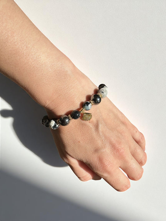 Orca Agate, Hematite and Black Onyx Seashell Crystal Bracelet