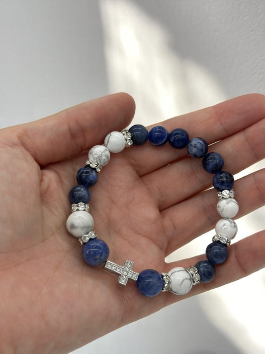 Sodalite and Howlite Rhinestone Cross Crystal Bracelet