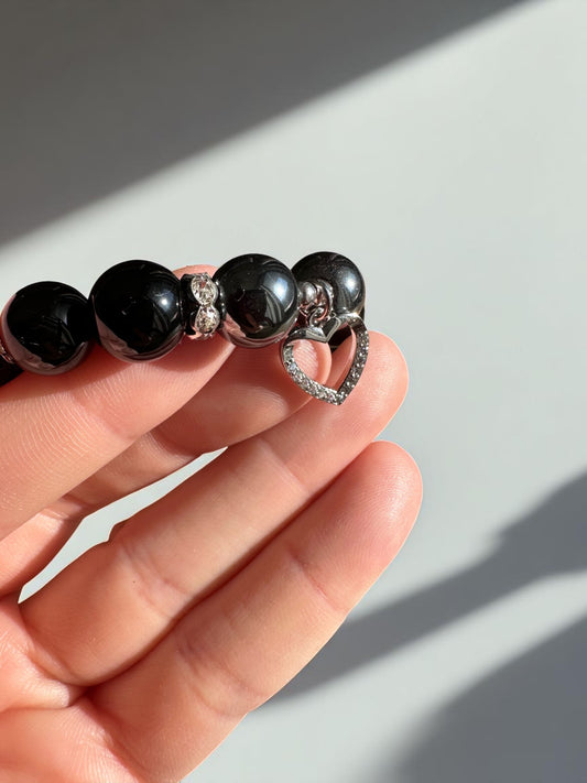 Hematite, Black Onyx and Black Obsidian Heart Crystal Bracelet
