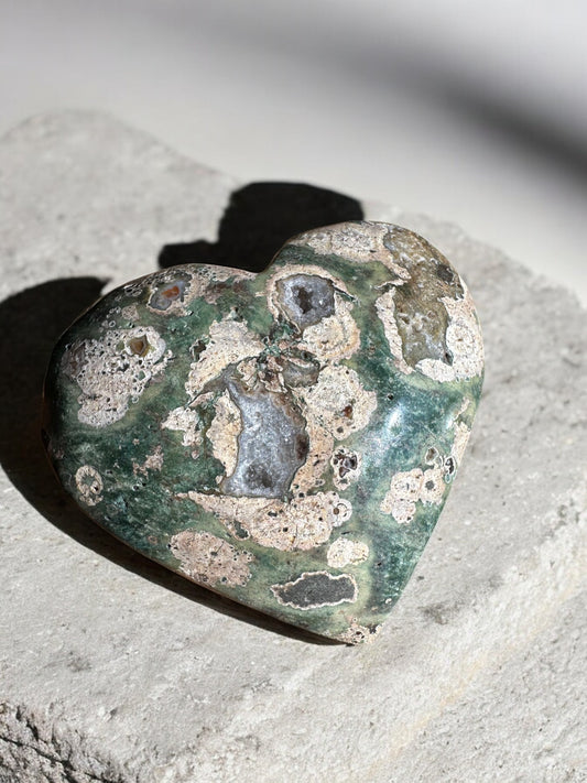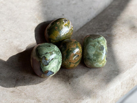 The Rhyolite Collection showcases beautiful green crystals known for their grounding and balancing energy. Rhyolite is a stone of strength and endurance, helping to inspire personal growth, emotional healing, and deeper connection to nature. This collection features a variety of crystal shapes, including crystal towers, tumbled crystals, crystal hearts, and palm stones, as well as crystal jewellery and beaded bracelets. Whether used for meditation, energy healing, or as decorative pieces, Rainforest Jasper's calming and stabilising properties make it a wonderful addition to any crystal lover’s collection.
